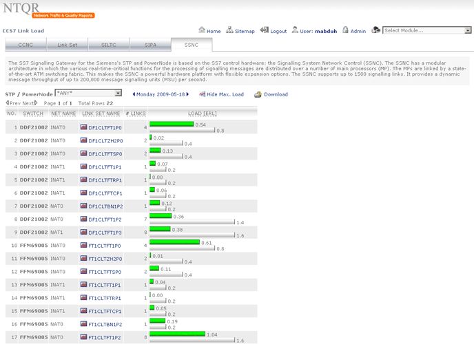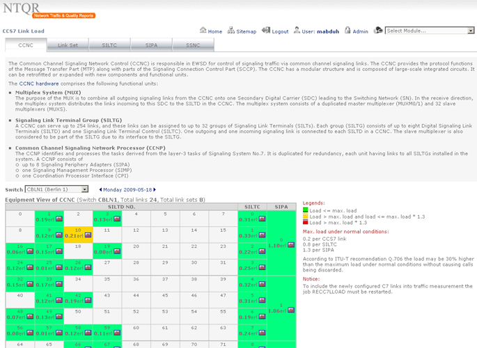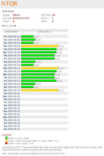 Like trunkgroups the signaling links of the SS7 network must be monitored. It can be done in a simple and easy way using NTQR. The logical structure of the SS7 network is displayed on the web portal in the way that the network engineer can quickly retrieve the needed information about the usage of the C7 links and link sets.