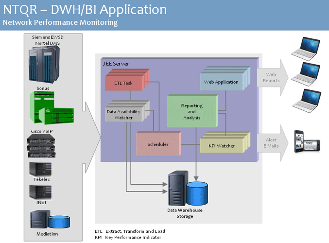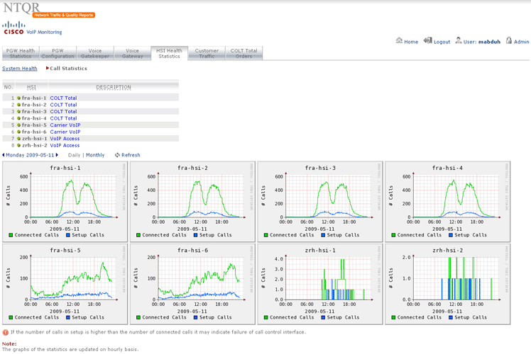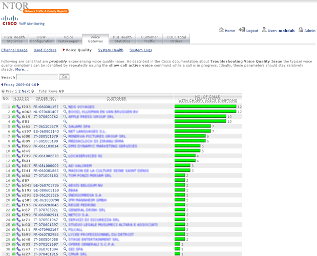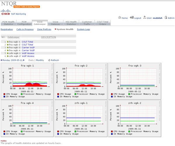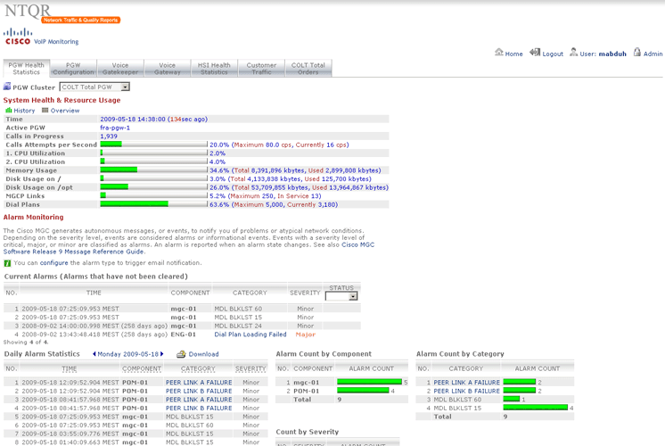 PGW, HSI, Gatekeepers and Gateways A5400 are devices that are deployed in the Cisco VoIP networks. NTQR monitors these devices in term of system health and resource usage. NTQR can be used to pro-actively monitor the voice quality. It analyses every calls (e.g. check on jitter) and generates a report about the calls that probably are experiencing voice quality issue. The network operation engineer can then troubleshoot the issue before the customer raises a trouble ticket.