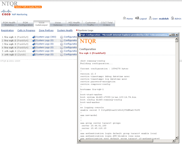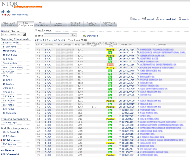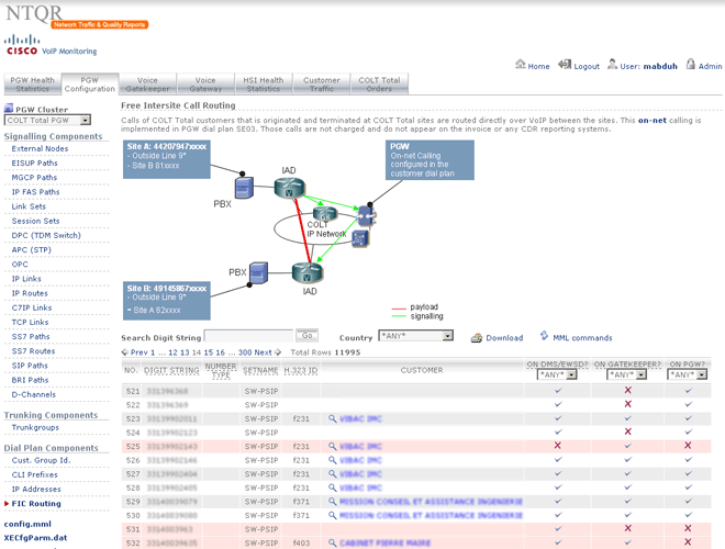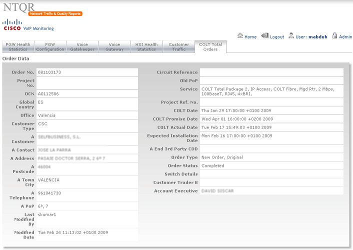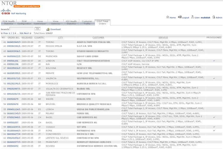 I started developing the NTQR application when I joined COLT Telecom in 2001. It has been growing since then with new features accompanying the evolution of COLT networks. Following sections are currently available from within the NTQR web portals. You can click on the image to see more images that illustrate the features provided by the NTQR modules.