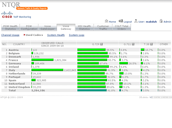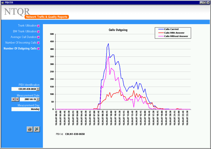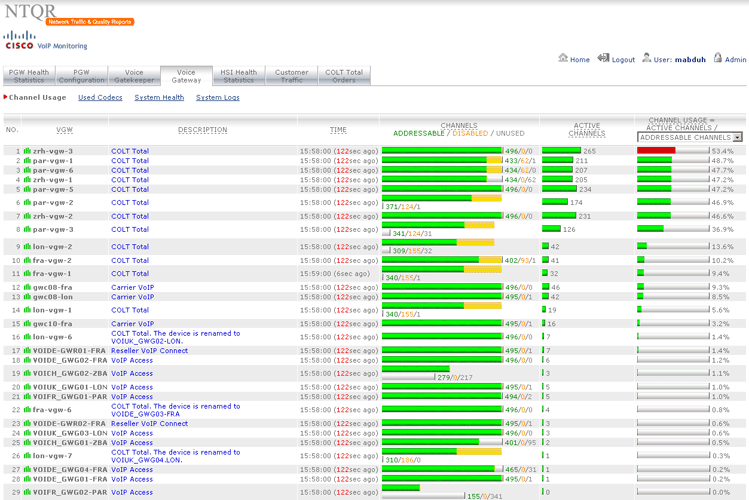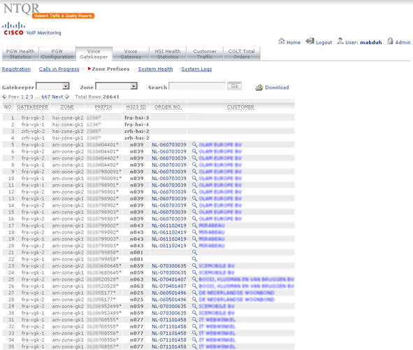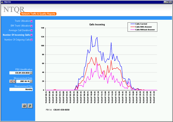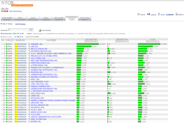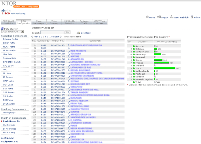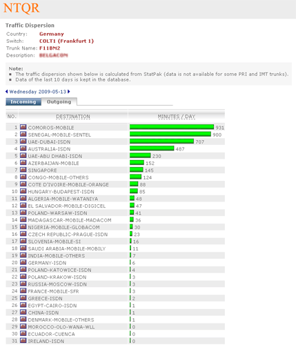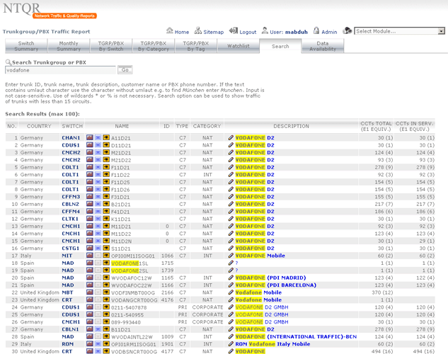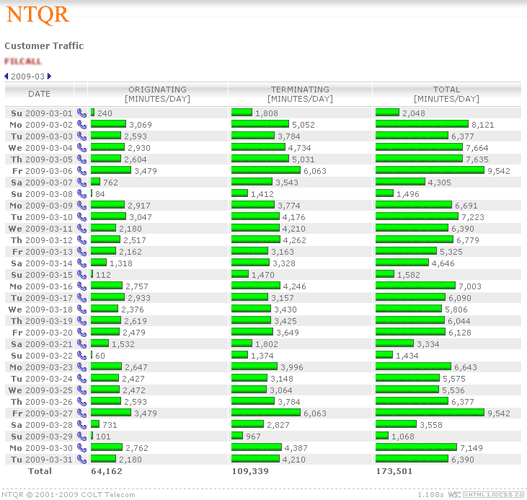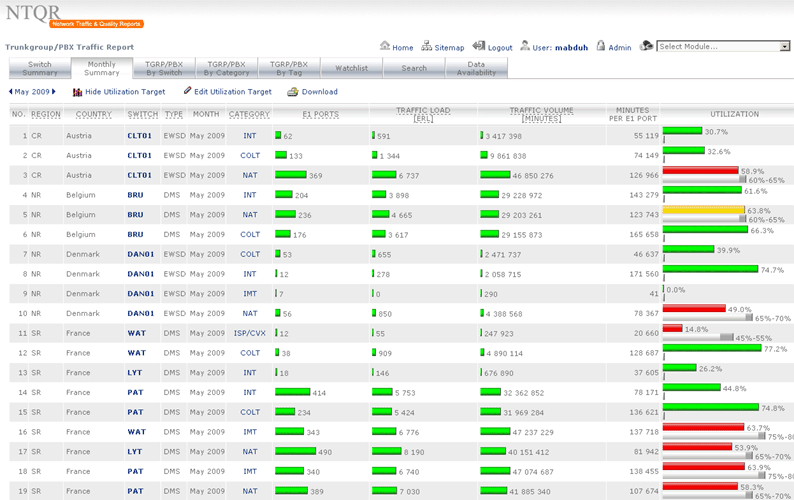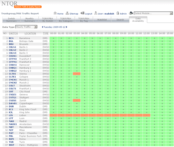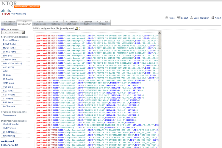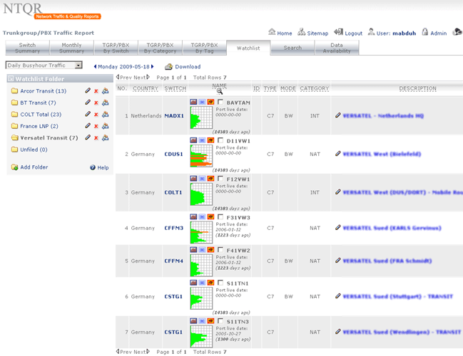 How can I manage more than 25,000 trunkgroups of the COLT pan-European network without tools? It was the question raised by a desperate network planning engineer. NTQR was developed to help users monitor huge number of trunkgroups. User can manage trunkgroups in her/his watchlists. NTQR provides reports that show historical data of traffic volume, call statistics, trunk usage, trunk status etc. of trunkgroups. It can help us detect traffic flow problems such as out-of-service trunks, all trunk busy conditions, or call blocking which ensures uninterrupted voice services to the customers. Customers sometimes ask for reports for their PBX trunks. Such PBX traffic report can be generated by NTQR in a very easy way.