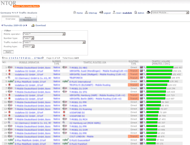 Transit costs are high! It is the cost a network operator must pay for a transit service. A transit call is routed via two ore more carrier networks for termination. Especially the charges are high for transit calls between fixed and mobile operators. The network planning engineer is responsibility for minimizing the transit costs. NTQR monitors the transit traffic and help network planning engineer perform routing adjustment which can reduce the costs for the transit service.